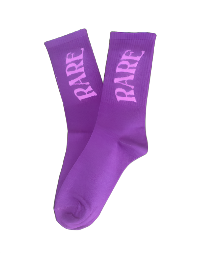 1 pair of socks purple with dark pink logo.